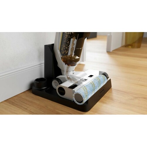 | System!Clean funkcija samostalnog čišćenja i PureRoll valjak - efikasna funkcija samostalnog čišćenja sa do 550 obrtaja valjka u minuti - za brzo i praktično čišćenje bez kontakta sa prljavštinom. Valjci se mogu prati u mašini na 60°C za dodatnu praktičnost, higijenu i održivost. Praktično odlaganje uređaja i dodataka, čak i tokom punjenja | |