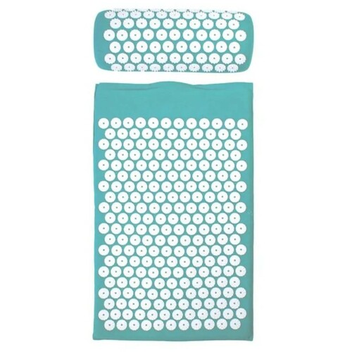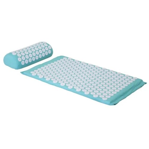 | Akupresurna prostirka i jastuk koriste male plastične vrhove za stimulaciju tačaka pritiska na telu, slično akupunkturi, ali bez upotrebe igala | |