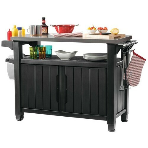 | Prostrani orman sa dvostrukim vratima opremljen funkcionalnom pločom od nerđajućeg čelika i praktičnom ručkom sa kukicama za peškire dobro će poslužiti tokom važnih porodičnih okupljanja na terasi ili u bašti. | |