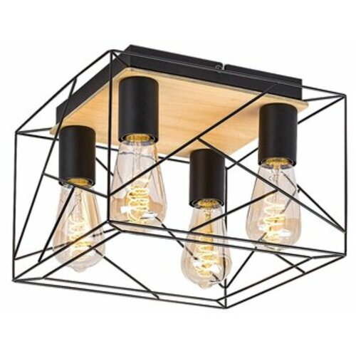 RABALUX Boire, plafonska lampa, crna metalna/drvena lampa sa crnim metalnim abažurom, E27 4x40W, IP20