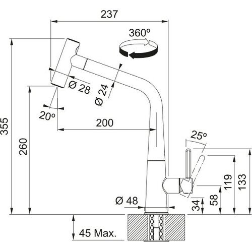 | Visina do izliva | 260 mm |